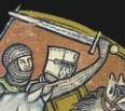 Ausrüstung der Templer - Historischer ÜberblickDie Tempelbrüder bekamen auf Basis ihrer Ordensregeln grundsätzlich eine gute Ausrüstung gestellt.Viele nicht ritterliche Krieger im säkularen Bereich hätten die Mittel für die Bewaffnung und Rüstung nicht aufbringen können. Wichtig ist außerdem, dass die Rüstung nur auf Befehl angelegt werden durfte. Die einzige Ausnahme hiervon war die Kettenhaube vor der Schlacht, die nach dem Aufsetzen aber nicht mehr ohne Genehmigung abgesetzt werden durfte. Waffenrock Bevor die Heraldik aufkam, schützte der Waffenrock den Panzer vor der Sonneneinstrahlung, die das Eisen sehr stark aufheizen konnte. Der Waffenrock wurde stets nur zur Rüstung getragen und ist auf Abbildungen des alten Europas erst ab dem 13. Jahrhundert häufiger anzutreffen. Sogar im sonnigen Sizilien wurden Ritter im „Liber ad honorem Augusti“ (rund 800 Jahre alte einzigartige Text- und Bilderchronik des Dichters Petrus de Ebulo zur Machtübernahme des Stauferkaisers Heinrich VI. imvon den Normannen beherrschten Königreich Sizilien)noch ohne Sonnenschutz dargestellt. Den Tempelbrüdern wurde er jedoch in Artikel 140 gewährt und für die Dienenden in Artikel 141 nochmals präzisiert. Obwohl mehrere Quellen den Waffenrock der Templer beschrieben, ist nicht ganz klar, wie er um 1190 ausgesehen hat. Gesichert ist, dass der Waffenrock der Dienenden Brüder schwarz (bzw. dunkelbraun) war und zwei rote Kreuze zur Kennzeichnung hatte: Eines auf der Brust und eines auf dem Rücken. Diese Kreuze waren sehr wahrscheinlich so ausgestaltet wie auf dem Habit, d.h. etwa handgroß und getatzt. Ein Brief von Papst Gregor IX. (datiert auf den 9. Januar 1240), der ähnlich auch an andere Ritterorden verschickt wurde, gewährte den Brüdern einen neuen, bequemeren Waffenrock. Gleichzeitig beschreibt er den alten Waffenrock ("Cappa clausa") als die Arme und Hände bedeckend und dadurch behindernd. Der Begriff "Cappa" lässt zusätzlich möglicherweise auf eine Kapuze schließen. Zusammen mit den Fresken in der Templerkirche von Cressac-Saint-Genis (Westfrankreich), erscheint es wahrscheinlich, dass es sich beim Waffenrock der Templer vor 1240 um eine Art Kutte mit Reitschlitz gehandelt hat. Es ist allerdings umstritten, welche Personen auf den Fresken Templer und welche nur Kreuzfahrer sind, wobei die untere Reihe mit den weißen und schwarzen Reitern gut auf die Templer passen würde. Ringpanzerhemd Das Ringpanzerhemd stellte die Primärrüstung eines besser ausgerüsteten Kriegers dar. Es schützte den Träger recht gut vor Schnittverletzungen. Beschusstests aus unserer Zeit zeigen, dass Ringpanzer entgegen der land-läufigen Meinung sehr wohl Schutz gegen Beschuss durch Armbrüste und Bögen bieten konnten. In der Regel wurde das Ringpanzerhemd auch noch durch einen textilen Panzer ergänzt.