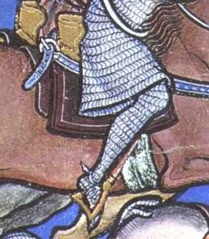 Ringpanzerhosen Die Beine der Dienenden Brüder wurden mit Panzerhosen aus Ringgeflecht geschützt. Um 1190 waren diese Ketten-beinlinge im Gegensatz zu späterer Zeit, in der die Panzerhosen komplette Röhren waren, an der Beinrückseite noch offen. Dort wurden sie mit Bändern (vermutlich aus Leder) verschlossen. Auch bei den Kettenbeinlingen der Dienenden Brüder gab es einen Unterschied zu den Rittern des Ordens: Sie hatten kein Fußteil, dadurch konnten die Dienenden besser als Infanterie eingesetzt werden. Ob an den Panzerbeinlingen zu der Zeit bereits Polstermaterial (Polsterbeinlinge oder eine polsternde Zusatzschicht) angebracht war, ist umstritten, da Funde und Berichte fehlen und die Abbildungen hier keine Rückschlüsse zulassen, weil diese ja die Panzerbeinlinge als oberste Schicht zeigen. Da aber der restliche Körper bereits mit Textilrüstungen geschützt wurde, ist anzunehmen, dass dies auch für die Beine galt, die ja aufgrund der kleineren Fleisch- und Muskelmasse anfälliger für Brüche waren als beispielsweise der Torso. Spekulativ kann hier ein doppellagiges Lederträgermaterial mit Füllung angenommen werden, an dem die Ringe des Beinpanzers ange-bracht waren. Dies hätte gleichzeitig einen stabilisierenden Effekt für die Form des Beinpanzers zur Folge gehabt.