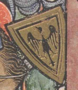 Schild Auch einen Schild sollten die Dienenden Brüder bekommen. Im weltlichen Bereich wurde der Schild offenbar oftmals durch einen ledernen Überzug geschützt, denn dieser wurde den Templern in Artikel 53 verboten. Wovor diese Lederhülle schützen sollte, ist nicht überliefert, angenommen werden kann aber die Witterung, denn damalige Leime waren wasser- und hitzeempfindlich. Bemerkenswert ist in diesem Zusammenhang, dass auch die Lanzen keinen Überzug haben durften, wahrscheinlich aus denselben Gründen. Die Schilde dieser Zeit waren im Vergleich zu späteren Formen noch relativ groß und entsprachen etwa der Form eines Normannenschildes (Mandelform) mit gerade geschnittener Oberkante. Heute hat der Schild eine Breite von 87 cm und eine geschätzte Höhe von 95-100 cm. Der Korpus besteht aus ca. 15 mm starken stehenden Erlenholzplanken. Der gesamte Schild ist beidseitig mit Pergament bespannt und mit einem schwach mit Knochenleim angerührten Gipsgrund behandelt. Auf diesem Gipsgrund befindet sich eine Kreidegrundschicht, die anschließend bemalt wurde. Schilde der Zeit konnten aber auch aus anderen Hölzern gebaut werden, viele der Marburger Schilde bestehen beispielsweise aus Lindenholz. Die Beriemung der Schilde war den Abbildungen zufolge nicht mehr der vom Teppich von Bayeux bekannten senkrechten Anordnung ähnlich. Es war eine Beriemung, mit der man den Arm schräg nach rechts oben hielt. Die Schildfessel, ein langer Riemen, wurde im Kampf häufig um den Hals getragen, und zwar sowohl beritten, als auch am Boden; dies stabilisierte den Schild zusätzlich. Dass die Schilde der Templer bemalt waren, ist relativ sicher anzunehmen. Unklar ist indessen, ob sie stets in den Ordensfarben gehalten waren, ob sie weltlich bemalt waren, oder gar beides. Für alle drei Varianten gibt es Indizien, weshalb eine weltliche Bemalung oder eine gemischte (weltlich mit Ordenssymbolen kombiniert) nicht auszuschließen ist.